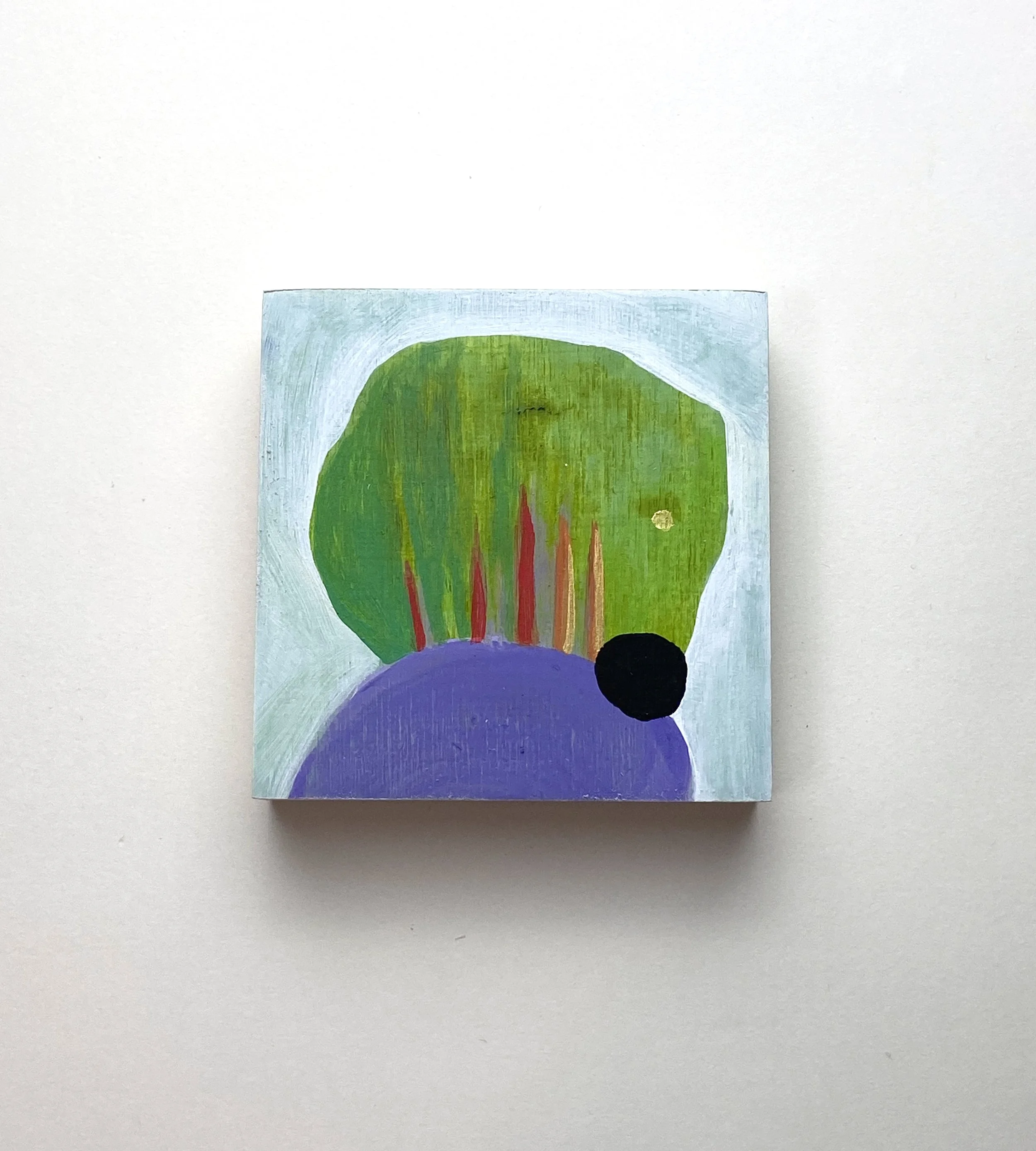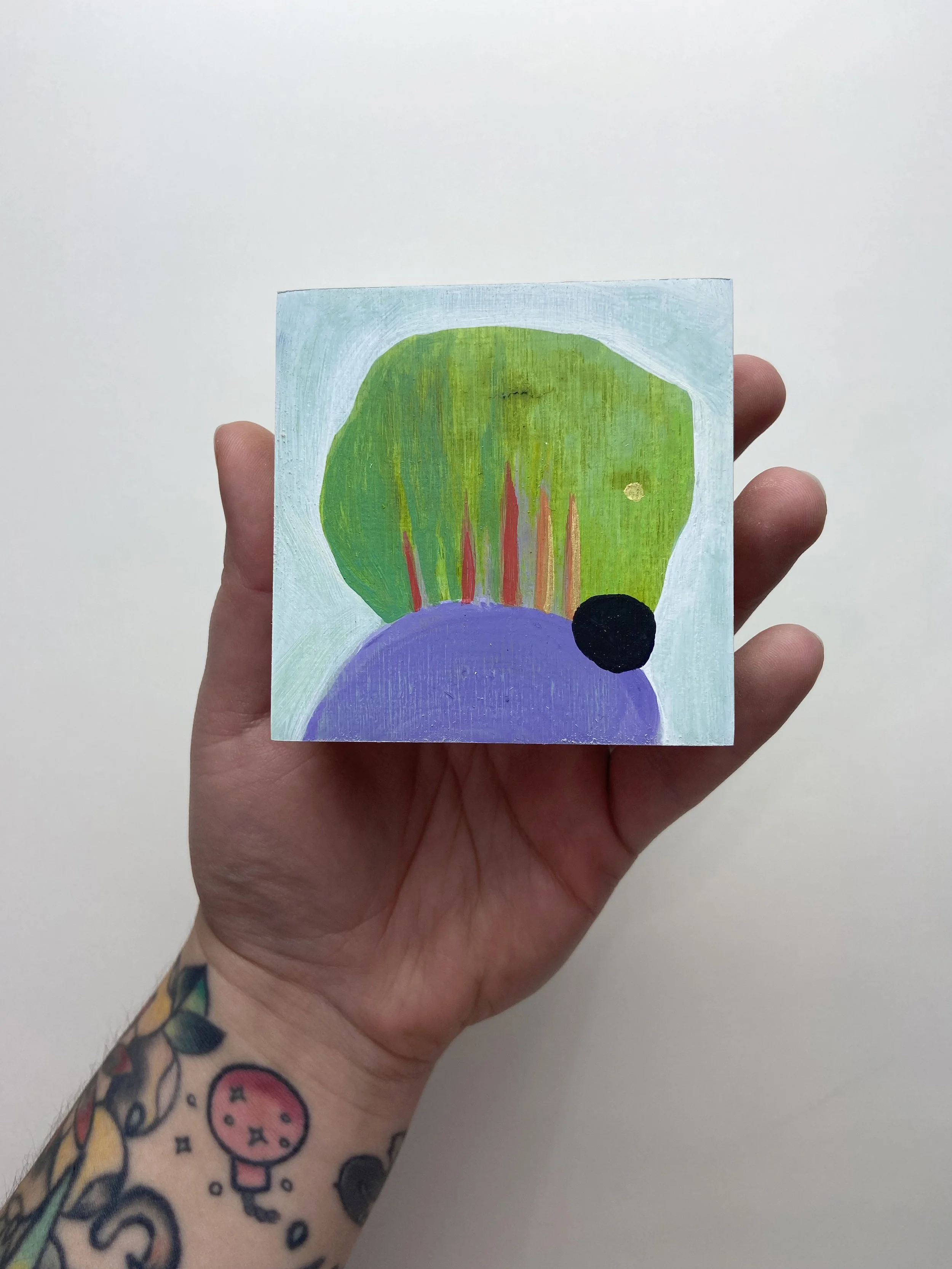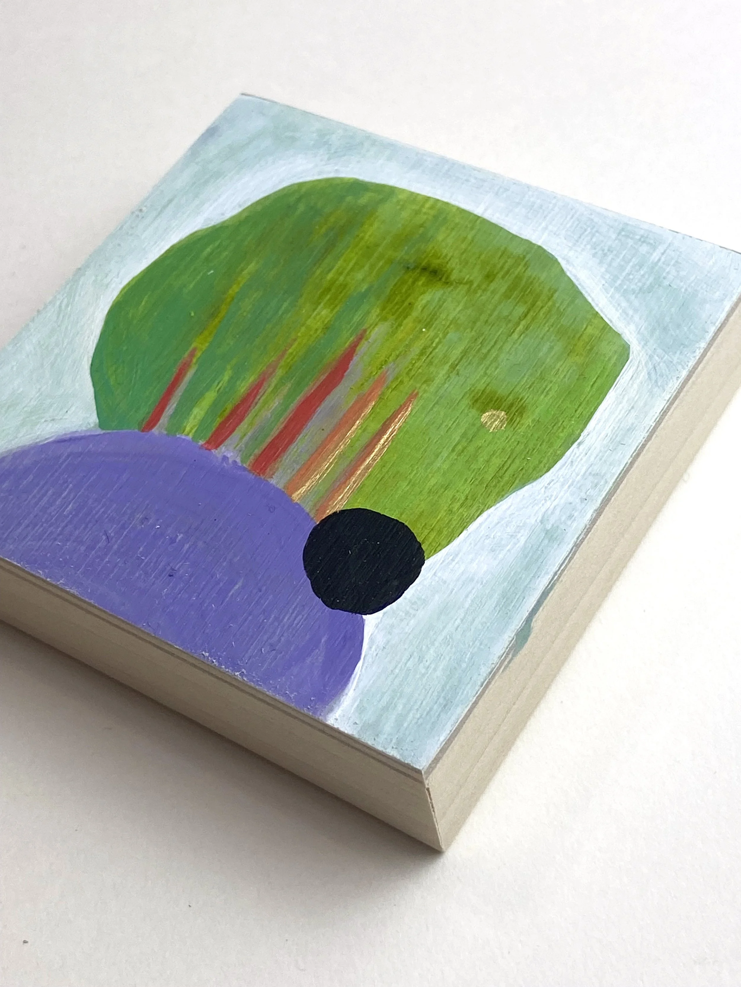 An original painting created with acrylic and colored pencil on birch panel.
